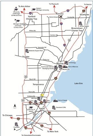 97.05 acres of vacant land ready for industrial development in southeastern Michigan. Large tract, located in a business-friendly community just 1 ½ miles north of the Ohio/Michigan line. 40 miles south of Detroit. Easy access to I-75 (exit 2) and US-23. Close proximity to I80/90 (Ohio Turnpike). Possible development incentives available from state and local agencies.