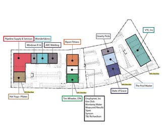 17 executive office suites available for lease, approx. 120 SF per suite. Full service. - 10' finished height for offices - Office doors will have glass windows. - Full Utilities including HVAC and Fiber internet included - Mens and Women's restrooms - Break Area Included - Multiple Suites can be combined in certain areas.