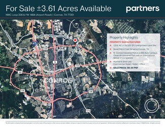 • ±3.61 AC Unimproved Land Site • Great Site in Fast Growing Conroe, TX • N. Conroe Industrial Park is a 400-Acre Campus, Clean Air industrial Park with an International Group of Companies • Highest & Best Use: Commercial Retail/Hotel/Office