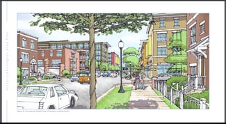 Village encourages 2+ story mixed-use redevelopment, with retail/restaurant/service on the ground floor and residential above.