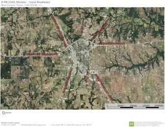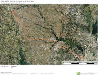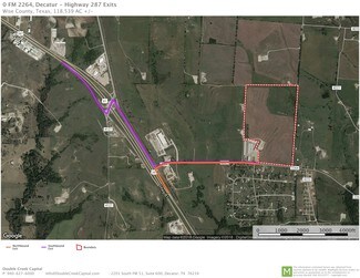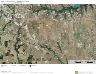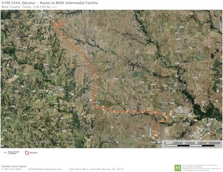 Proposed 118.539-acre site is offered on a per acre basis, net of oil and gas pad sites. Developer will bring City of Decatur water and sewer to site, along with three-phase power from Wise County Co-Op. Natural gas is not available to site.