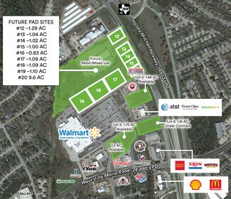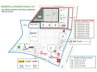 Phase I: Outparcel #2 ~1.48 AC Outparcel #4 1.41 AC Outparcel #5 1.75 AC Outparcel #21 0.69 AC Phase II: Outparcel #12 ~1.29 AC Outparcel #13 ~1.04 AC Outparcel #14 ~1.02 AC Outparcel #15 ~0.83 AC Outparcel #16 ~1.01 AC Outparcel #17 ~1.09 AC Outparcel #18 ~1.09 AC Outparcel #19 ~1.10 AC Outparcel #20 ~9.6 AC