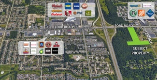 • Neighbor assemblage possible for up to 100 + acres • The subject property sits southeast of IKEA on Ford Road. • The zoning is Mid Rise Development allowing for a mixed-use development of office, commercial, and residential uses. • The property has exposure on Ford road, I-275, and Al Smith Street. • Major retailers of Sam's Club, Home Depot, Gardner-White, Emagine Theater, and a variety of others also surround the site.