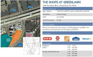 Shadow anchored by HEB. Across from Dell Round Rock Campus. Easy access to Hwy 45, I-35, Mopac Expy & SH 130.