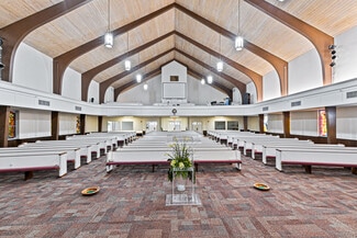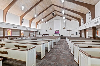 2703 Wesley Street is approximately 35,000 square-feet with 2 stories. There are 2 chapels with their main worship center seating around 575 people. This church features many office spaces, classrooms, a baptistry, pews, worship center balcony, library, laundry room, kid’s center, outdoor playground and more. The history of this property dates back to the 1800’s. In the center of Downtown Greenville, it is the perfect location for a religious center and office space.