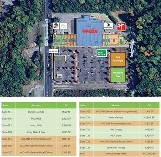 The Lusby Center is a Weis-anchored freestanding neighborhood shopping center. The property is located at the prominent intersection of HG True & Rousby Hall Road. Great access to MD Route 4 which boasts traffic counts of 26,680 per day. This property is located in Lusby, MD, a well-established and affluent community. 5,766 or 9,770 SF of possible contiguous space. Two 2nd gen fully equipped restaurant spaces available. Proposed Pad Sites Available - 3,600 SF each.