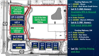 New development in Fairhope, AL with commercial outparcels available with frontage on Highway 181 and Highway 104. Build to suit, ground lease, or sales are available. Most size parcel can be met, however, please call for further information. Located directly across the street from a brand new Publix and across the street from the new USA hospital, both almost done with construction. Highway 181 is being widened to 4 lane and construction is in process and is almost completed. Baldwin County is one of the fastest growing counties in the state and this corner offers great exposure and an incredible location.