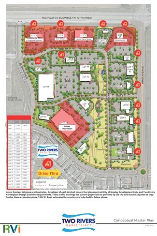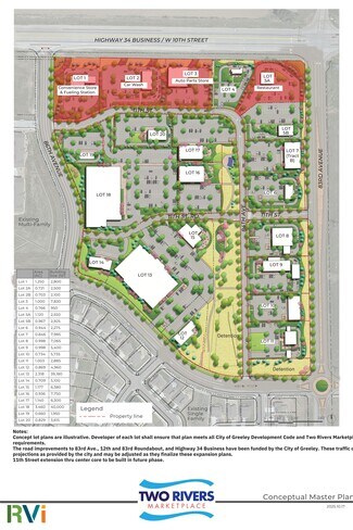 Two Rivers Marketplace comprised of 29 Acres is at The Gateway to West Greeley. A master planned commercial community located in a tremendous emerging market. Highway 34 Business with 25,000 + cars per day, and 83rd Ave. with 8,000 - 9,000 cars per day. There are over 15,000 new homes built or under construction. The site is surrounded by 400 homes and 250 apartments with similar construction directly North across the highway 34 Business.. The City of Greeley is enhancing access into Two Rivers Marketplace with major improvements to the highway and 83rd Ave., including multiple turn lanes and new roundabout at 12th/83rd.