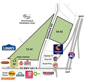 -1.31-acre site zoned Highway Business which allows for a variety of commercial uses. High visibility on Yadkinville Road and great location among neighboring retailers in Mocksville's Commercial Trade Area. Neighbors include Arby's, Wendy's, Sheetz, Lowes Home Improvement and Dollar General. Also located near hotels, other restaurants and a Walmart Supercenter (across I-40)