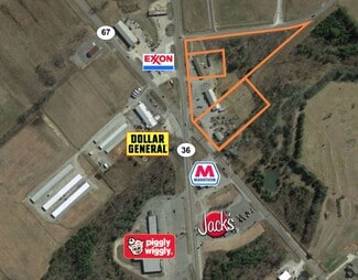 Three (3) parcels of land totaling +/- 5.56 Acres Located on the SW corner of Hwy. 36 & Hwy. 67 Crossroads intersection covering large trade area Good location for Banks & C-Stores Convenient access to I-65 Nearby Cities: Decatur, Hartselle, Lacy Springs, Eva