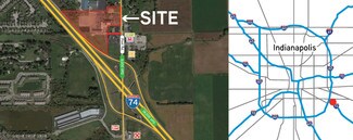 Land with multiple commercial buildings located with frontage on Interstate 74 on the near-southeast side of Indianapolis, IN. Approximately 12 acres total. Existing Office/Warehouse space in 5 total buildings on the property, with large concrete parking area suitable for cars & trucks.