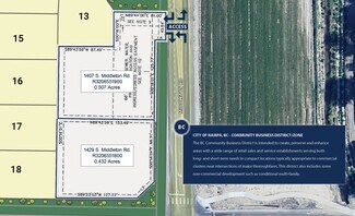Introducing a prime development opportunity in Nampa, Idaho! These two lots, totaling 0.939 acres, are ideally situated at the intersection of Middleton Road and Lake Avenue. Zoned BC - Community Business, this property offers endless potential for retail sales and service establishments. With excellent hard corner exposure and proximity to Nampa's 12th Avenue retail corridor, this location is primed for success. Surrounded by rapid residential development and just across from Owyhee Elementary School, this property presents an excellent long-term location in an established and growing area.