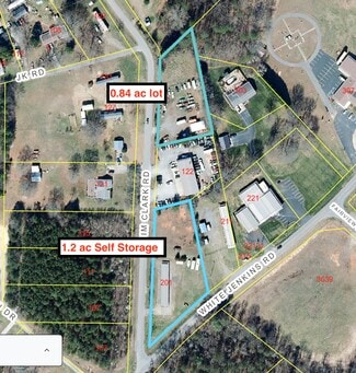 The property can be sold with the self storage facility and 1.2 acres at the corner of White Jenkins Rd.