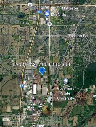 LAND LEASE / BUILD TO SUIT... Unincorporated WILL County... 2.91 ACRES... CORNER LOCATION:-)... Industrial Park Area just east of the I57 Exit At the Stuenkel Rd EXIT ... Current Zoning is R (surrounded by Industrial Zoning)... Governors State University is Close by... 334'+/- Frontage... Current traffic count is 10,700 (with potential to INCREASE)... be where the action and job population growth is happening... possible uses: Industrial, a drive-through restaurant/coffee facility, car wash, strip center with retail or other services, small office or medical building, hospitality or small hotel, ???? .... dollar store, convience outlet ... etc...etc... possible NNN development location....