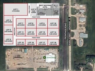 Each lot is serviced to the property line with water, sewer, electrical, and gas provided by Manitoba Hydro, ensuring readiness for development. The paved access road and prominent frontage along Highway 10 make this an ideal location for retail, hospitality, or service-based businesses seeking high exposure and connectivity. A prime pad site is available directly in front of the hotel, offering a turnkey opportunity for a restaurant or complementary retail concept.