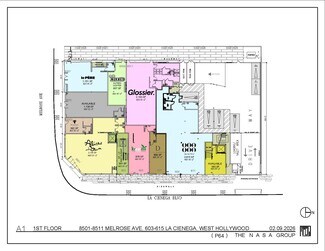 This high-exposure corner at Melrose Avenue and La Cienega Boulevard sits at the intersection of two of Los Angeles’ most iconic commercial corridors. With over 260 feet of wraparound frontage and three levels of on-site parking, the property offers unmatched visibility and accessibility in the heart of West Hollywood’s Design District. This is an exclusive tenancy opportunity within a dynamic roster of co-tenants, including Alfred Coffee at Glossier, Baobab, le PÈRE, Ep & Lp, Carrie’s Pilates, Kreation Juicery, and Alice & Olivia.