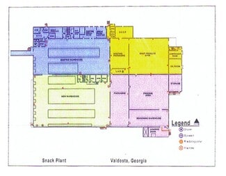 This property boasts 29.6 acres of land with two buildings consisting of 368,000 SF - building one is 312,823 and building two is 58,454. There are 2 Rail Spurs, the span between posts is 100ft, 70, ft, and 40ft. There are 25-30 ft ceilings with a clear span and 9 raw material silos used for baking goods such as flour. Included are many large capacity tanks for hot and cold liquids. There are long tunnels used for refrigeration with 2000 amp electricity, 3 phase/ 480 volts (Georgia Power). Atlanta Gas Light/ Scanna Gas Service, Sprinklers, City of Valdosta water/sewer/fire protection, 26 Truck doors and 2 drive-ins, 260+ parking spaces, and 50 for trailers, truck, and vehicle access from Forrest and Cypress streets.