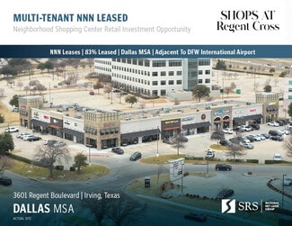 Shops at Regent Cross is a 27,611 SF multi-tenant retail shopping center located on the high traffic street of Beltline & Regent Blvd. The center is surrounded by national tenants including The Home Depot, Wal Mart, Sam’s Club, Kohl’s, Target and many more. The center is located only 4 miles from Dallas Fort Worth International Airport.