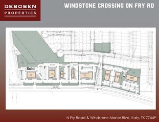 -$26-$32 PSF -End Cap $32.00 in line ranging $26-$30 PSF -Multiple tracts for lease, build to suit or sale located at the northeast and southeast corners of Fry Road and Windstone Manor Blvd. -Phase 1 of development will include a +/- 12,000 sf retail building for lease with a drive through. -Lighted intersection at the entrance of the Windstone Colony South subdivision. -Utilities available from HC MUD 284. $24.00 PSF - $28.00 PSF $24.00 PSF for In-line $28.00 PSF for hard corner tract -In-lines/End-caps ranging from $22.00-$28.00psf