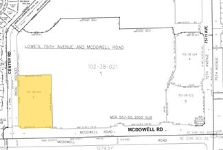 1,200 SF - 5,000 SF with Drive-Thru on Pad as well as anchor space in line of 24,039 SF.? This successful power center in West Phoenix is located on the north-west corner of 75th Avenue & McDowell Road and is anchored by Ross, WSS, Big Lots, Dollar Tree and is shadow anchored by Wal-Mart Supercenter and Lowe's.? This center is a 1/4 mile north of the I-10 Freeway and has high Hispanic demographics.? 1.77 acres of land is for sale or lease with frontage on McDowell Road.?