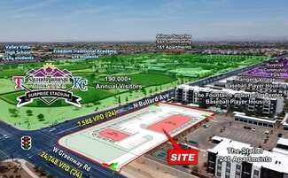 • Across from Surprise Stadium, home to the Texas Rangers and Kansas City Royals during Spring Training, with an average of 190,000+ visitors each year.