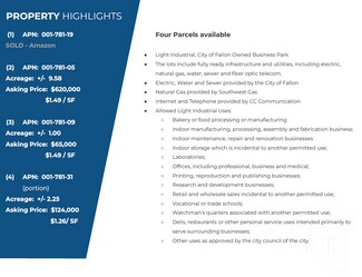 Light Industrial Business Park land located within the City Limits of Fallon.