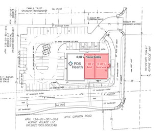 PROPERTY HIGHLIGHTS Ground Lease or Build-to-Suit Options Available Pad Ready with All Utilities Prime Location in the Growing Kyle Canyon Community Convenient Access to Highway 95 & 215 Planned Station Casino Nearby Limited Retail Corners Along Kyle Canyon Located Between Two Master-Planned Communities Hard Corner Location Future Lighted Intersection