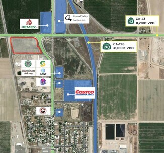 This 9.68± acre development site spans four (4) parcels and is located at the highly visible intersection of Highway 198 and 8th Street in Hanford, California—a prime location within one of the Central Valley’s most connected and fast-growing commercial corridors. With direct access to Highways 198 and 43, these parcels provide seamless connectivity to major population centers such as Fresno, Bakersfield, Los Angeles, and San Francisco, making it ideally suited for retail, hospitality, logistics, or service-oriented businesses.