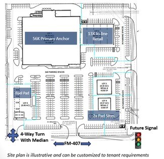 Development plan is fully customizable based on tenant requirements, with the ability to deliver ground lease, build-to-suit, or land sale structures. Site planning allows for phased delivery aligned with anchor tenant timing, with supporting retail and outparcels positioned to benefit from anchor-driven traffic.