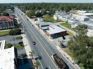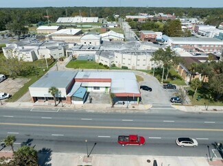 Exceptional commercial real estate opportunity in the heart of Downtown Live Oak. This property comprises two distinct buildings (one was a restaurant and the other has 3 separate office spaces), each offering unique possibilities for entrepreneurs and investors alike. One building formerly a successful restaurant, this space is equipped with a commercial kitchen (some fixtures still in place, like the hood vent, prep area, sink), dining area, and bar. Ample seating capacity and room for expansion outdoors. The adjoining building offers 3 retail/office spaces with full exposure to Hwy 129. Don't wait!