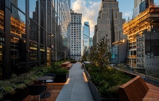 Punctuating the Manhattan skyline, PENN 1 is a Class A, 55-story tower of over 2.5 million square feet, providing breathtaking 360-degree views of the entire city and direct access to Penn Station and Moynihan Train Hall. A building-wide redevelopment of PENN 1 has been completed, which includes over 160,000 square feet of amenities and all new retail. Vornado's ongoing transformation of the midcentury PENN 1 to an office building of the future redefines working in The PENN District. The first three levels deliver WorkLife, an amenity ecosystem for tenants to focus on work and self-care. The lobby offers two options for grab-and-go food, Office Hours and Blue Bottle, and Blue Ribbon Sushi & Steak, an exciting dining experience combining traditional Japanese cuisine with a modern-day steakhouse.
