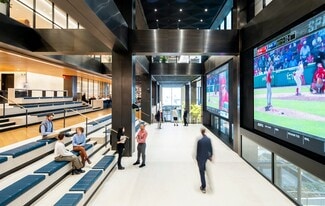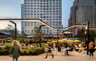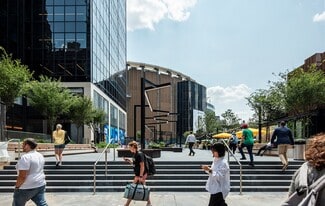 A social staircase connects the main entrance on the first level to the amenities on levels two and three. The social stairs' bleacher seats and large LED panels are the perfect location for casual meetings or private events. Level two features: The Landing - a full-service restaurant with private dining rooms, multiple tenant lounges for socializing and working, Life Time - a 35,000-square-foot fitness and wellness center, WorkLife Meetings - a 20,000-square-foot conferencing facility, and WorkLife Office Suites - over 80,000 square feet of adaptable workspace. The exterior building renovation is nearing completion with significant upgrades, including complete facade painting, taking the mullions from silver to black. Distinctive color change lighting in the building crown now illuminates PENN 1's place in the ever-changing skyline. Situated on one of the busiest corners in Manhattan, at the intersection of 34th Street and Seventh Avenue, and sitting atop Penn Station, the transformation of PENN 1 is poised to redefine THE PENN DISTRICT. Vornado is reimagining 150,000 square feet of retail, including the Long Island Railroad concourse and a curated retail and dining experience along Plaza 33.