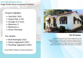 Introducing an exceptional investment opportunity in Pensacola, Florida. This portfolio features several single-family homes and one duplex. With 100% occupancy, it offers an attractive option for both multifamily and single-family rental portfolio investors. Don't miss the chance to add this high-performing property to your investment portfolio today!