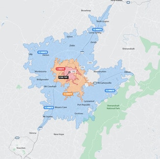 Stone Port is located in the fastest growing section in the fastest growing City in Virginia (21% over the last decade). More than 1400 new residential units/bed have been announced recently and a total of 3,200 new units/bed over the last two years within two miles of Stone Port. Additionally, the site is within 1.5 miles of Interstate 81, heavy SFR density, and 12000 James Madison University student beds and immediately across from Rockingham Memorial Hospital, which serves 200,000 patients annually and employs 2,400. Located on two of the busiest commercial corridors in Harrisonburg. Port Republic (18,000 AADT) and the Southeast Connector (31,100 projected upon build-out) with parcel sizes that are flexible and available for sale, lease, or build-to-suit. The Southeast Connector links every commercial corridor in Harrisonburg and will be the most heavily traveled road in the Shenandoah Valley. Those selecting Stone Port include Walmart Neighborhood Market, Dupont Community Credit Union, Moe's SW Grill, Bojangles, Wendy's, the Reserve at Stone Port (396 units), and more.