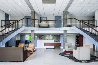 Set on a total of 8.03 acres zoned B1 Commercial, the site consists of a 3.71-acre hotel parcel with a 62,704 SF two-story building and a Vacant 7766 SF second-generation restaurant—pending renovation and/or new tenant/lease. The hotel includes a variety of room types, a breakfast area, and 12 out-of-service rooms ready for renovation, presenting an easy value-add component.