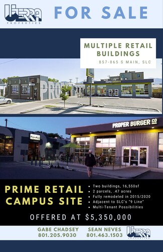 This unique property features 2 buildings on .47 acres in a prime retail trade area in south downtown Salt Lake City. The buildings were fully renovated in 2015 with additional new construction in 2020. Currently a brewery, restaurant, pub and corporate offices. The business is relocating, creating a unique opportunity to reposition the asset and establish a multi-tenant project. Located in an Opportunity Zone with D2 zoning and within the SLC Community Re-investment Area “State Street” project area, the site is ideally located to capture visitors from the CBD, the Salt Lake valley and areas outside of SLC. The site is 1/2 block away from an upcoming flagship hospital development in a thriving section of Salt Lake City’s core.