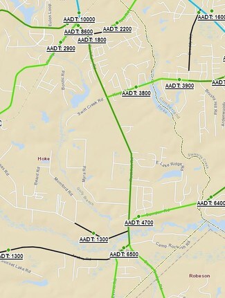 Prime land in Hoke county, on a busy corner of Rockfish Road and Camden Road. Site will benefit once the Fayetteville outer loop is done, this site is close to Camden Road exit and is at first intersection going towards Hoke County.
