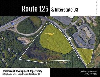 Property features 16.3 acres of developable upland and a contiguous 9 acres of developable upland along I-93 and Rte 125 frontage.