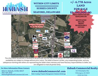 Attention entrepreneurs, investors and owner operators! Here's a fantastic chance to secure a valuable property in the heart of Seaford, Delaware backed up with an uptodate 2024 appraisal. This unique offering combines three parcels into one, boasting a total of approximately 6.778 acres+/-, with parcel number 331-3.00-193.00.