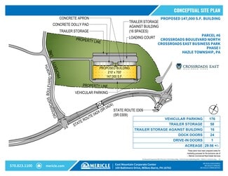Positioned within Hazleton’s Crossroads East Business Park, this under construction 147,000 SF industrial facility offers a rare combination of strategic location, modern infrastructure, and compelling financial incentives. Site work is complete. Steel arrives 1Q26 with building delivery set for 4Q26.