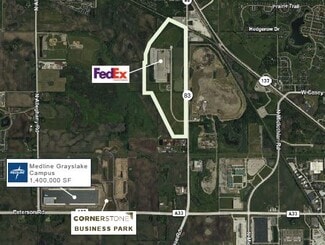 Grayslake Business Park is located in Lake County, IL and situated off of Illinois Routes 83 and 137, providing direct access to Interstate 94. The proposed plan includes four Class A facilities ranging from 90,000 SF to 290,000 SF. There is a 300,000 SF existing FedEx distribution center currently on the property, which is not included in the sale. The area surrounding the park includes numerous retail and lodging amenities as well as prestigious corporate neighbors including Medline, Culligan, ComEd, and T-5 Data Center. The facility is also close to multiple Metra stations that connect directly to Chicago’s Union Station with stops near O’Hare International Airport.