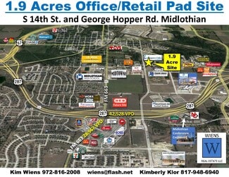 1.9 acre on the NEC S 14th St. & George Hopper Rd. In the heart of Midlothian business and educational district. Great location for retail/office/ medical.