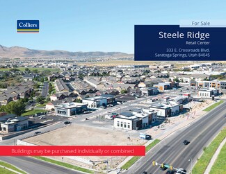 Pursue a high-yield retail investment with this stunning, brand-new construction shopping center at Steele Ridge Plaza. Comprising nine buildings and 83,576 square feet, this vibrant retail center boasts a prime location in the thriving Saratoga Springs suburb of the Salt Lake Valley at 333 E Crossroads Boulevard. Providing an incredibly efficient acquisition, the buildings are offered 83% pre-leased to strong tenants with new five-to-10-year lease agreements at market rents. This provides robust existing cash flow for a new owner along with significant value-add potential to fill the remaining vacancies. Currently, one building is completed, with the remaining eight buildings scheduled for delivery between August 2025 and March of 2026.