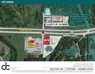 Bridgeport is located 45 minutes west of Denton and 15 minutes west of Decatur 18,000 + VPD on HWY 380 Hard Corner at a signalized intersection Regional draw with over 31,270 within a 10-mile radius and an average household income of $121,500 New multifamily development adjacent to this site - approximately 133 units. New single family developments currently under construction surrounding the site. Recent new National retailers to the area include Whataburger (2023), Katie’s Car Wash (2024), Starbucks (2023), Scooters (2023), AT&T (2022), Ace Hardware (2022), Tractor Supply (2025), Quick Trip (2025)
