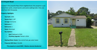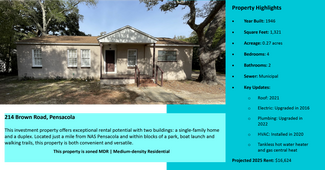 Introducing an exceptional investment opportunity in Pensacola, Florida. This portfolio features several single-family homes and one duplex. With 100% occupancy, it offers an attractive option for both multifamily and single-family rental portfolio investors. Don't miss the chance to add this high-performing property to your investment portfolio today!