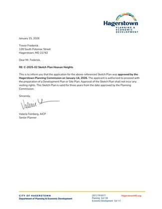 UPDATE. The City of Hagerstown has now approved the sketch & ESD Stormwater Management Concept plans (effective January 15, 2026). See docs section. Initial existing grade to finish grade cut/fill calculations have been determined to be approximately 4,350 cubic yards of cut and 34,350 cubic yards of fill, exclusive of pavement, foundations, utilities, etc. Existing forestation is approximately 2.26 acres with estimated clearing of 0.19 acres for improvements. Total required planting would be 0.38 acres or a one-time payment of $6,787 in leu of. A Geotech report will be completed in conjunction with the final construction drawings with approval expected by May/June. There are no expected impact fees other than permit, construction and utility connection fees.