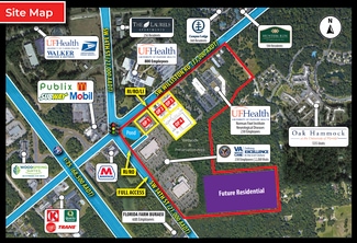 1.78-acre pad ready out parcel available at the lighted intersection of SW Williston Rd and SW 34th St. First lighted intersection off I-75 which is 0.25 miles West. Brand new 150,000 SF VA Hospital (230 employees)and 2,200 visitors a day. The site is located directly across the street from the new UF Health Campus (800 employees); to the West of the UF Health Campus Norman Fixel Institute Neurological Diseases (200 employees); and 0.4 miles from the Florida Farm Bureau office (600 employees)