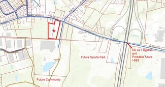 Nice level lot on NC Hwy 42 in Sanford. Potential rezoning to LI. Water to the property; sewer close by. Great location for an industry and/or the numerous Supplier/Service businesses that are headed Sanford's way.