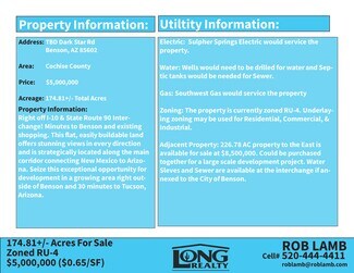 Adjacent Property: 226.78 AC property to the East is available for sale at $8,500,000. Could be purchased together for a large scale development project. Water Sleves and Sewer are available at the interchange if annexed to the City of Benson.