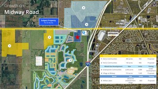 The subject property is located in western St. Lucie County, one of three counties which make up the designated Treasure Coast. The property offers 74.10 acres of developable land zoned under Port St. Lucie’s Planned Unit Development (PUD) District on West Midway Road immediately off I-95. The area is trending as the next expansion point for the county. The site sits around a number of proposed and approved new mixed use developments that will include a growth of industrial, residential and retail elements in the area.